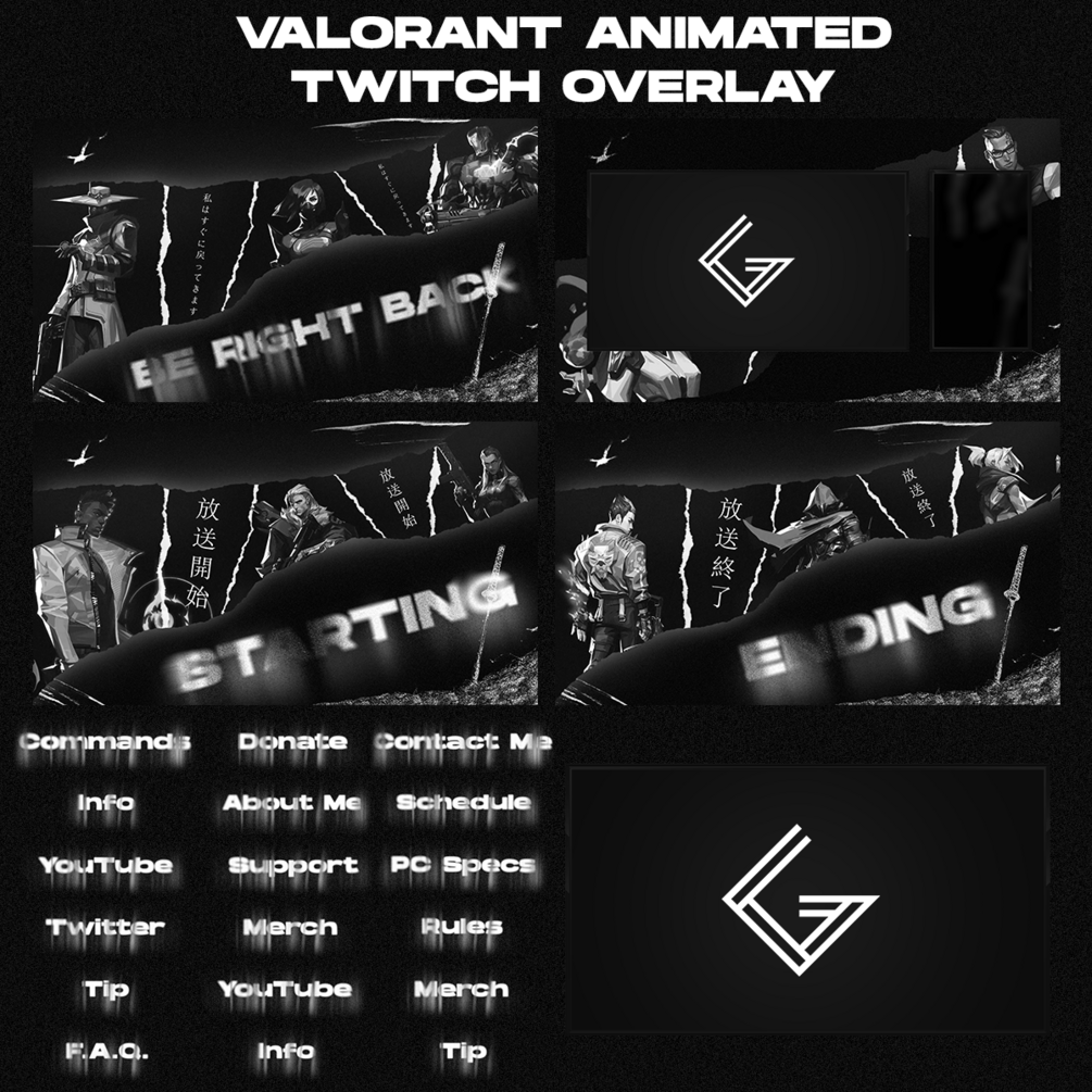 Valorant Animated Stream Overlay Package | Twitch YouTube | Japanese | Stinger Transition | Anime | Black, white and red (copy)